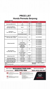 Pricelist honda 2026